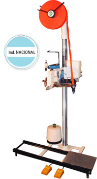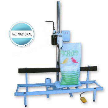 Un equipo construido a partir de un cabezal de costura portátil, es transformado en una unidad estacionaria con motor de mayor potencia, apto para el funcionamiento continuo, incluye además un carro transportador de bolsas.